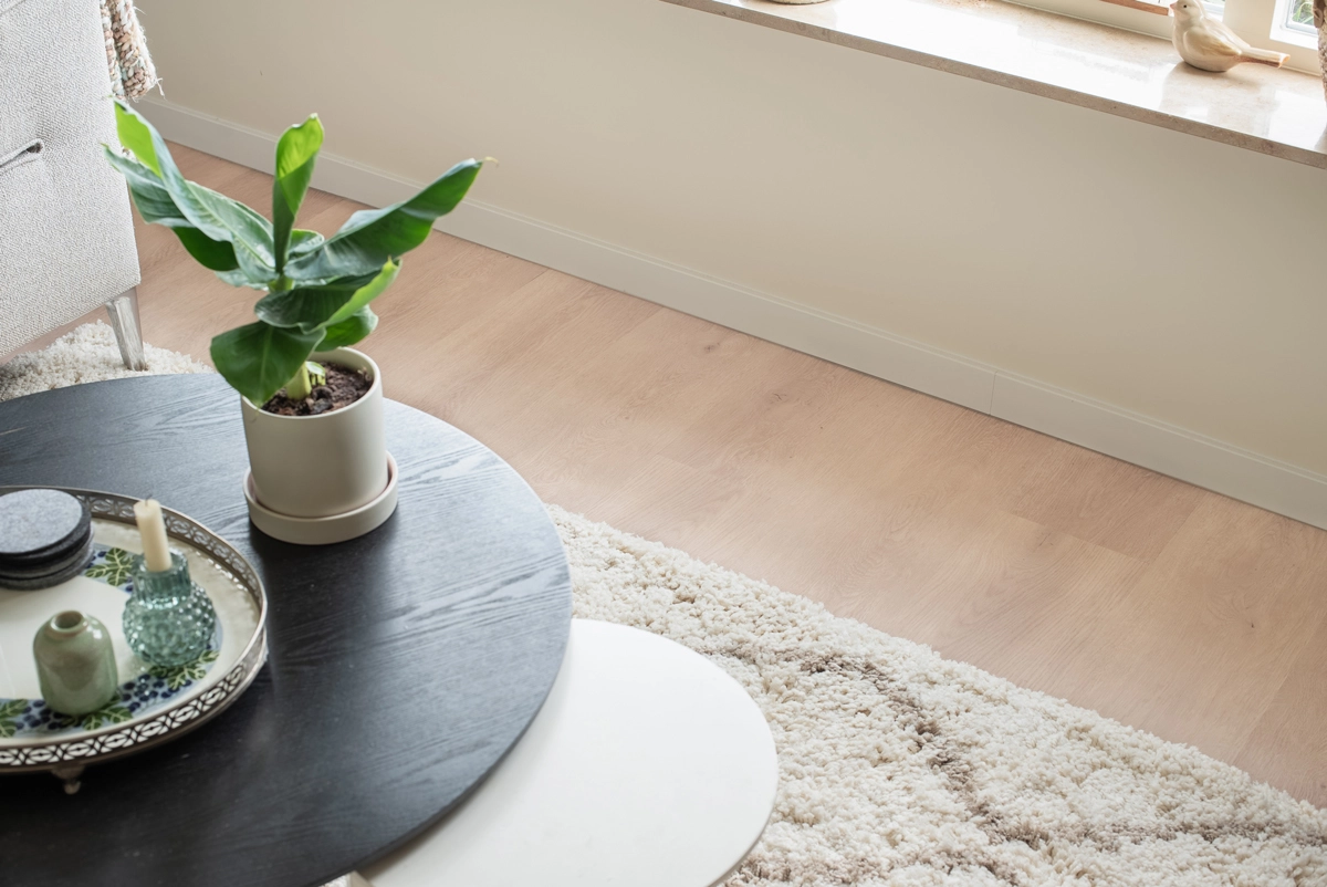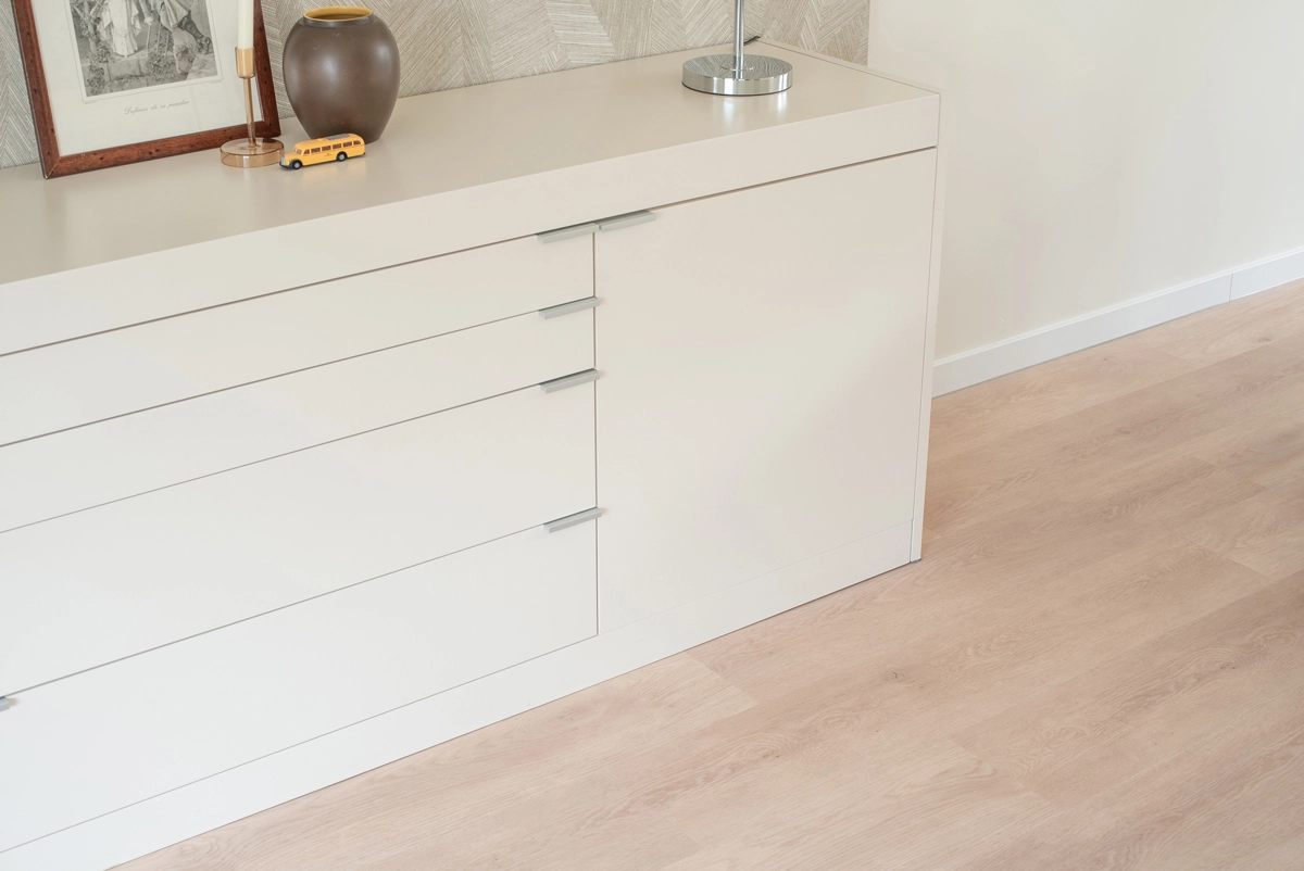 Een extra sterke PU-slijtlaag van 0,55 mm dik beschermt de bovenkant van de plank – hierdoor is de vloer ijzersterk! De Floer Dorpen PVC vloer in het lichtbruine Bemmel Beige Eiken wordt geleverd met een garantie van 20 jaar bij particulier gebruik. De verlijmbare plak PVC vloer heeft een zeer lage warmteweerstand van maar 0,019 m2K/W. Hierdoor is deze vloer perfect geschikt om te combineren met vloerverwarming. Daarnaast heeft het beige PVC een bijzonder en realistisch eiken design.