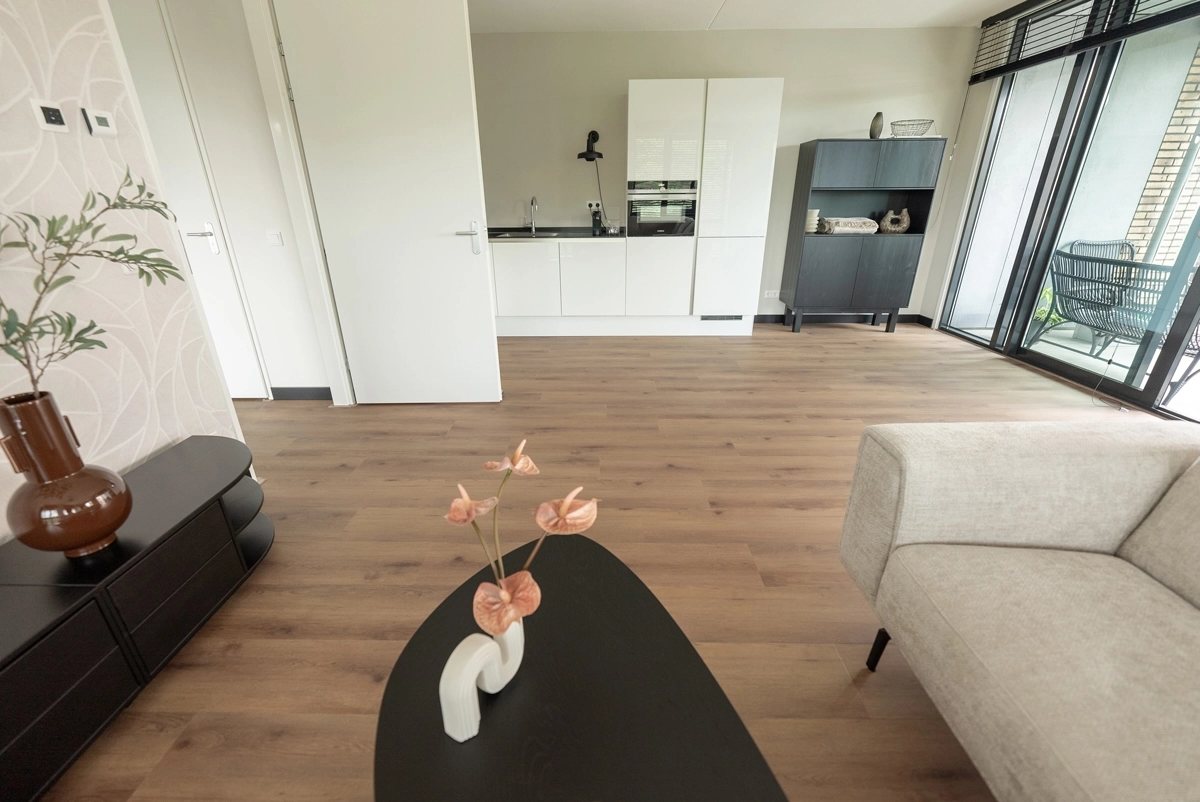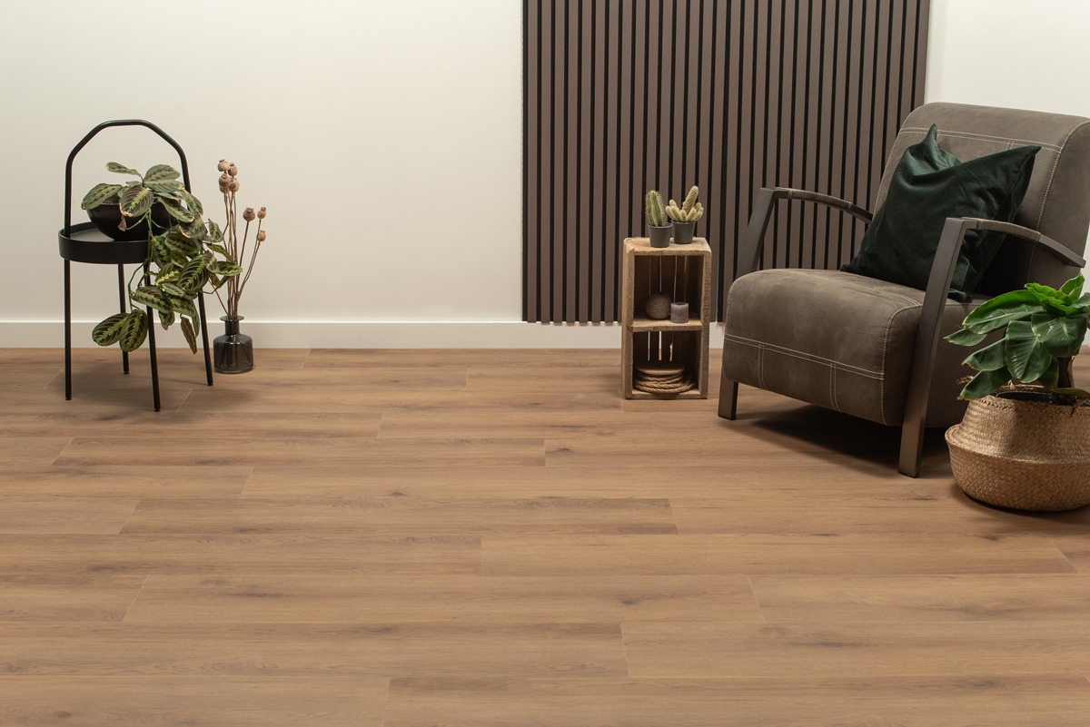 De randen van de planken in onze Dorpen PVC collectie zijn voorzien van een subtiele microvelling die bijdraagt aan een luxueuze uitstraling. Deze extra brede PVC vloeren zijn geschikt voor elke ruimte in huis, zelfs de badkamer en de keuken, doordat ze 100% waterdicht zijn. Hierdoor kun je moeiteloos een naadloze uitstraling in je interieur creëren. Wil je dezelfde vloer, maar dan in XL visgraatpatroon? Bekijk dan onze Walvisgraat PVC – Narwal Nootbruin, ook beschikbaar in Click PVC!