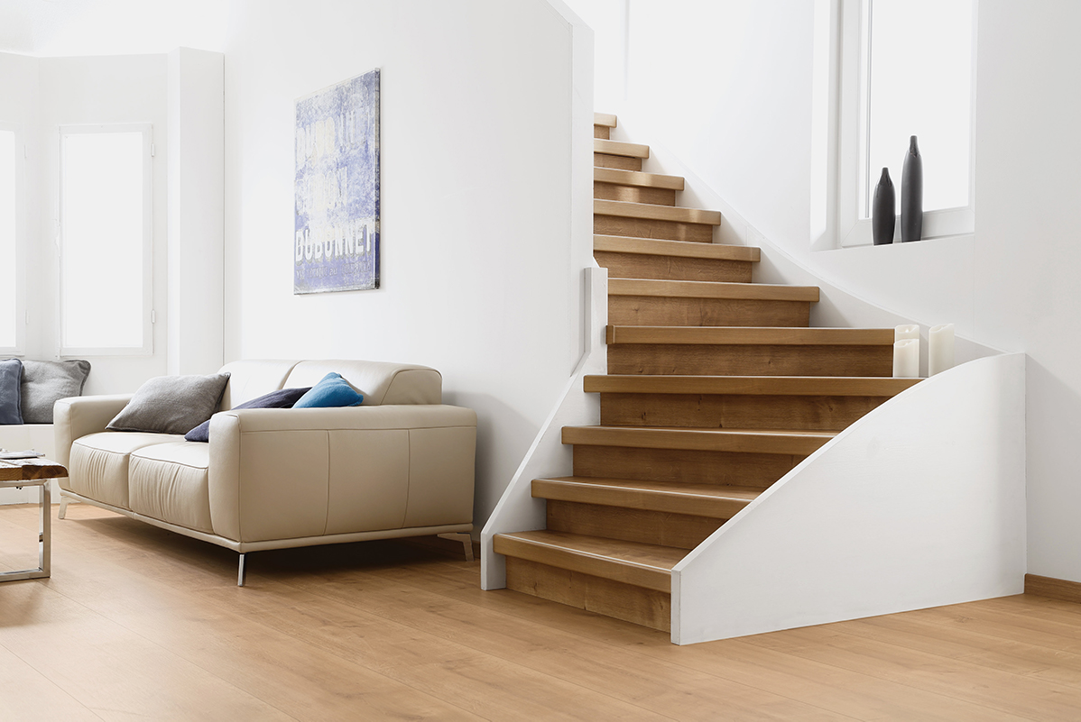 De structuur is bovendien voelbaar in de toplaag van de extra brede laminaat vloer. Het Landhuis Laminaat – Natuurlijke Eik is niet alleen prachtig op de Floer, maar ook perfect op de trap! Creëer eenheid in het interieur met de bijpassende Floer Trap Overzettrede – Natuurlijke Eik. De traptreden hebben hetzelfde design als deze brede Landhuis Laminaat vloer en zijn direct te verbinden met de vloerdelen.