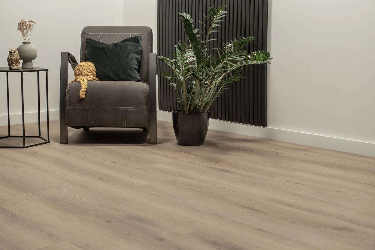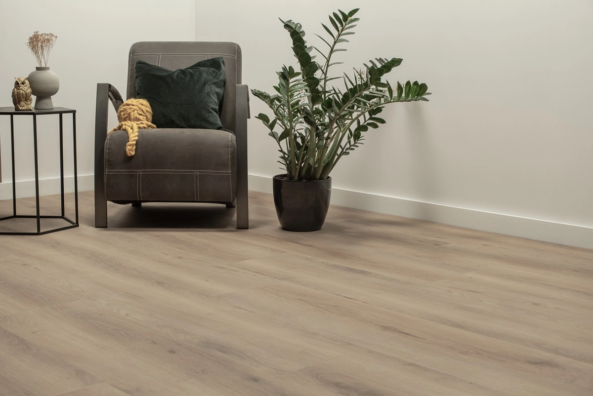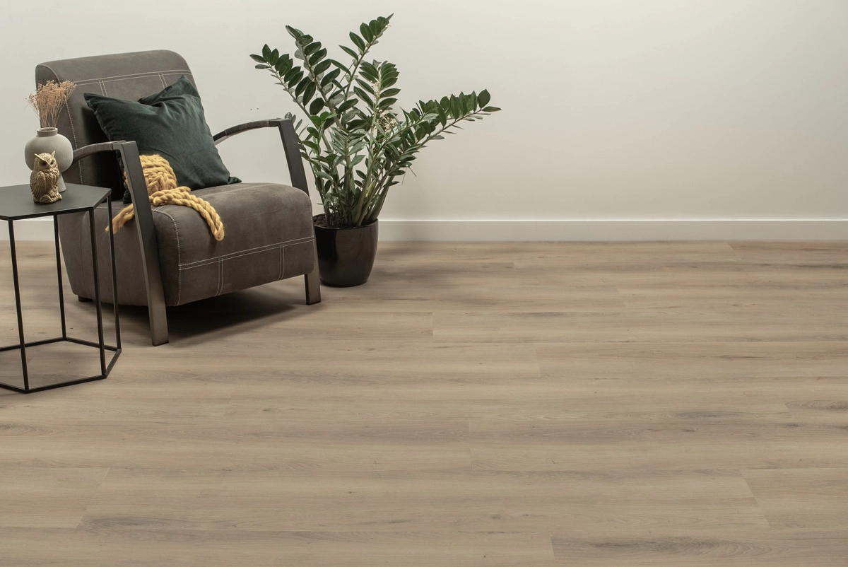 De Floer Landhuis PVC – Landelijke Eik is de perfecte keuze voor wie op zoek is naar een robuuste, brede PVC vloer met een warme, bruine eikenlook. Met extra brede XXL-planken van 154 cm lang en 31 cm breed geeft deze vloer jouw interieur een stoere, robuuste uitstraling en een ruimtelijk gevoel. Dankzij de voelbare houtstructuur met de matte MEGAMAT afwerking lijkt het alsof je echt massief eikenhout in huis haalt, maar dan met alle voordelen van Floer PVC.