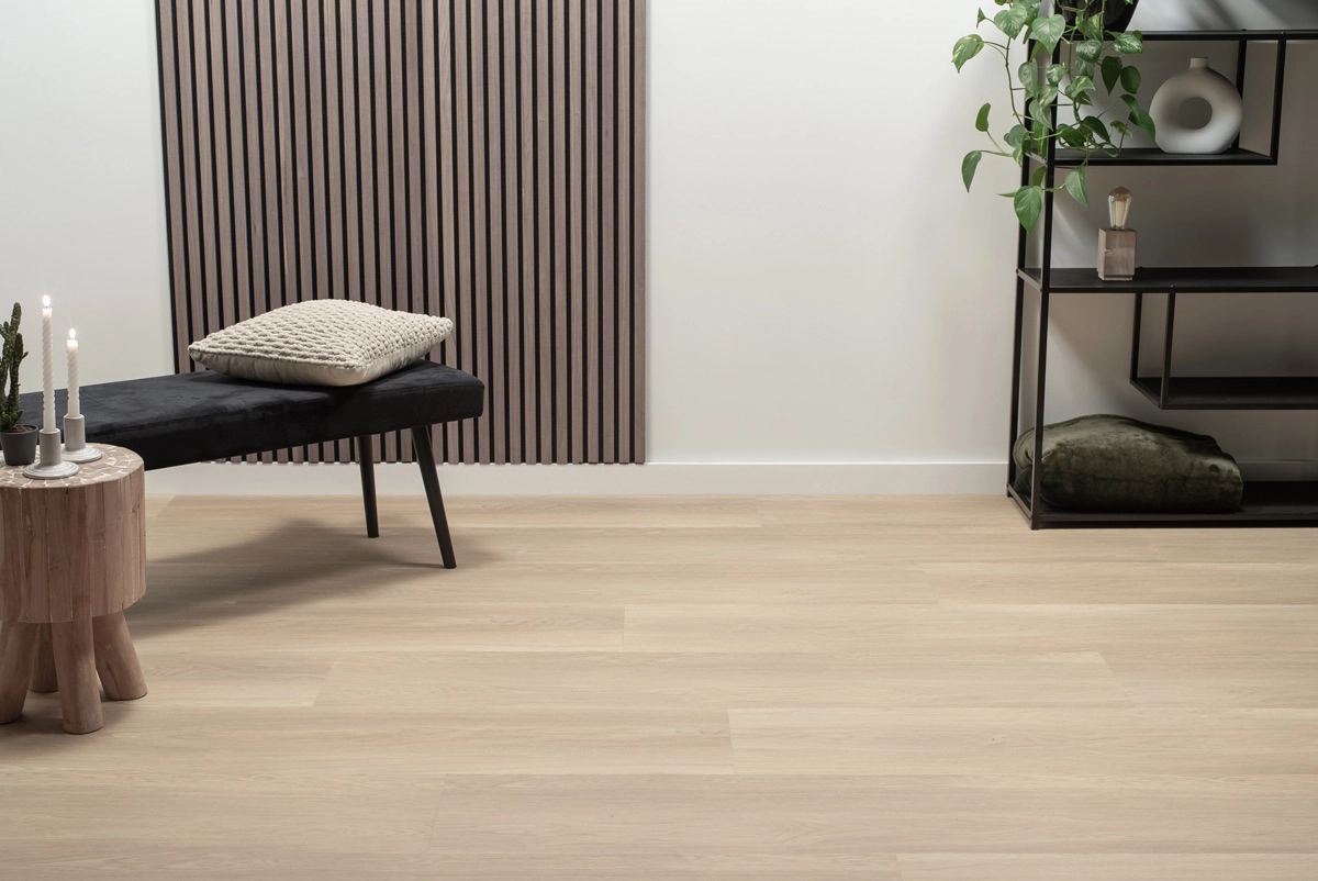 De Floer Landhuis PVC – Natuur Eik is een vloer die indruk maakt. Dankzij de extra brede XXL planken en warme eikenhoutlook vol karakter geef je iedere ruimte een stijlvolle. Met lengtes van 154 cm en breedtes van 31 cm creëer je een uiterst ruimtelijk gevoel. Of je nu houdt van een landelijke sfeer of juist gaat voor strak en modern: deze rechte plank PVC vloer voelt zich overal thuis. De voelbare houtstructuur en ultra-matte afwerking maken ’m bijna niet van echt hout te onderscheiden. En dat alles met de voordelen van Floer PVC.