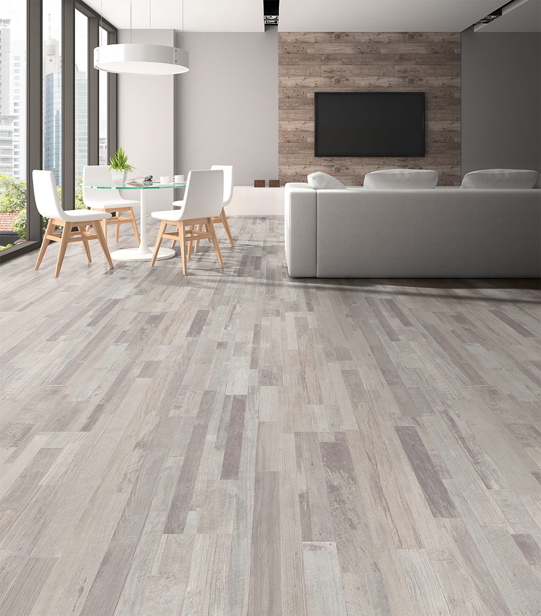 Floer sloophout laminaat, vloeren met een gebruikt en verouderde look! De Drijfhout Wit laminaat vloer heeft een prachtig verouderde houtstructuur. Deze retro structuur vind je nog eens voelbaar terug in de sloophout plank. De planken met een formaat van 128,5 x 19,2 x 0,8 cm zijn afgewerkt met een indrukwekkend driestrooks patroon.
