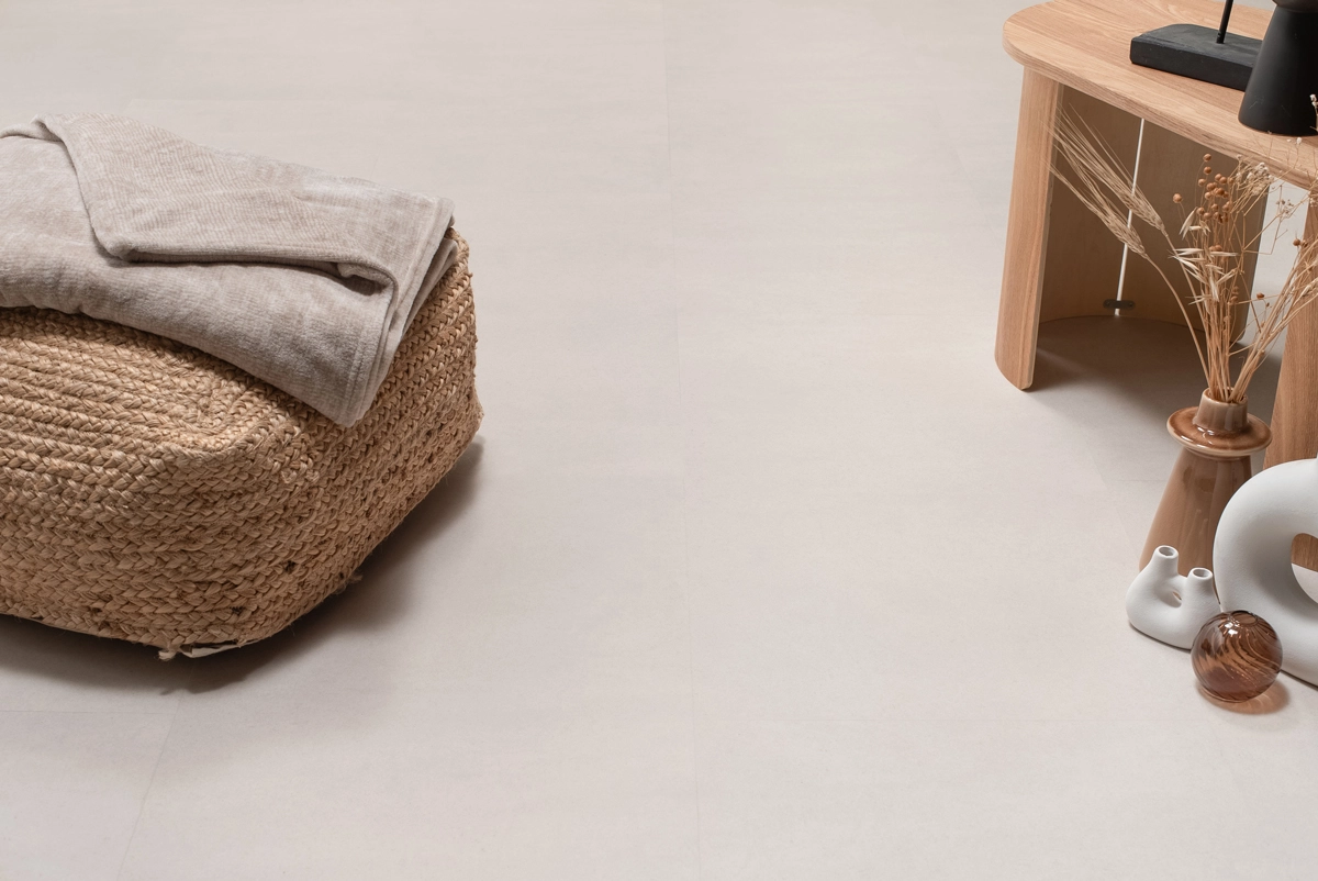 Naast zijn waterbestendigheid is deze tegelvloer uitstekend te combineren met vloerverwarming en -verkoeling. De lage warmteweerstand van slechts 0,019 m²K/W zorgt ervoor dat je in de winter met warme voeten geniet. Met zijn zandkleurige betonlook en praktische eigenschappen is deze vloer de perfecte keuze voor een veelzijdig interieur. Zo krijg je de uitstraling van echte betontegels, maar met alle voordelen van Floer PVC.