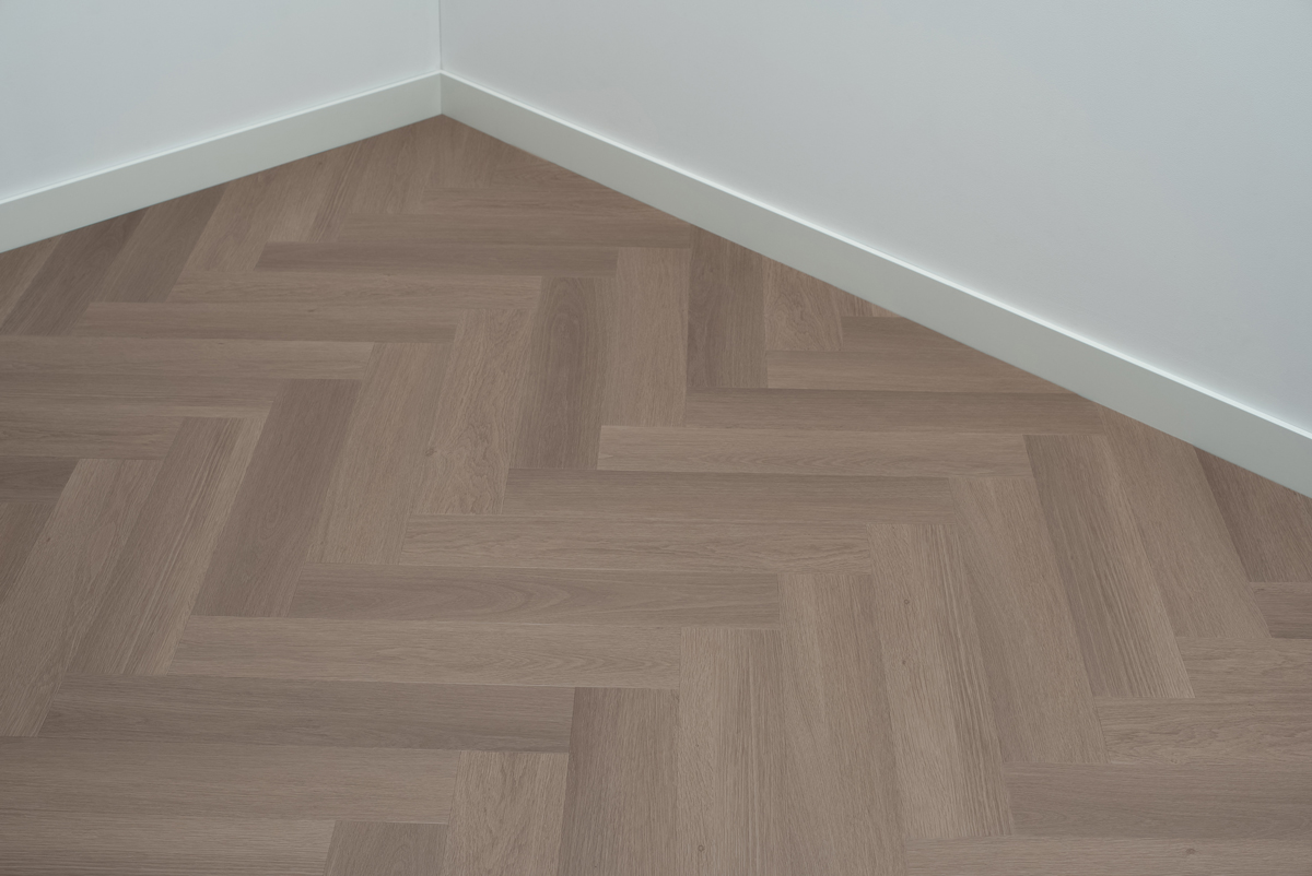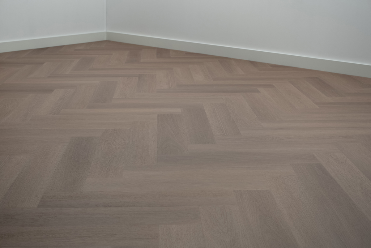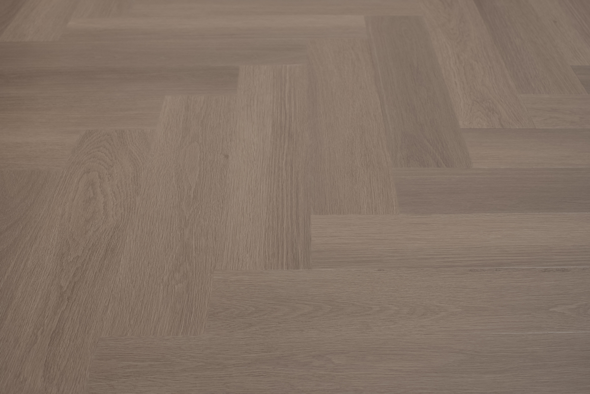 Visgraat click PVC vloer in greige kleur