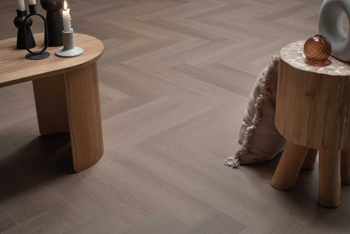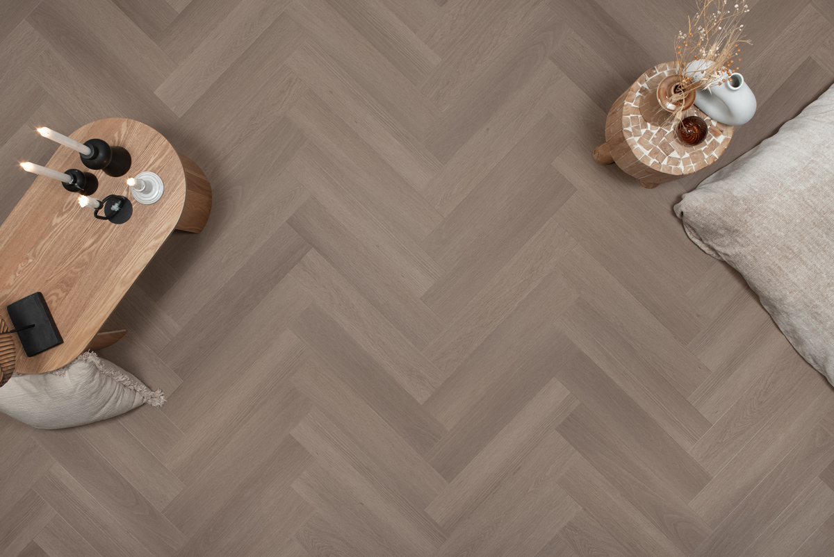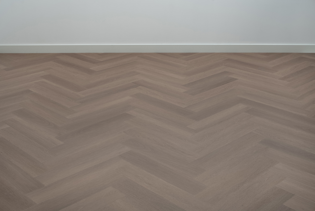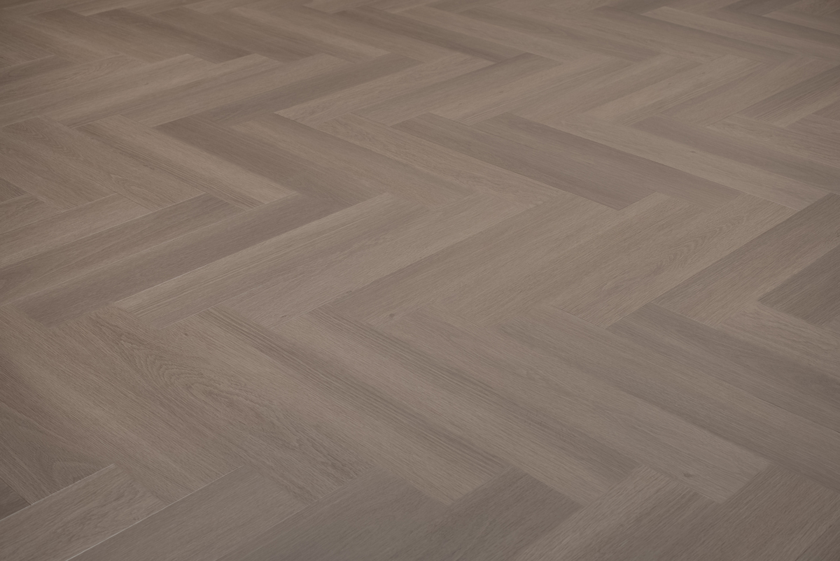 Visgraat click PVC vloer in greige kleur