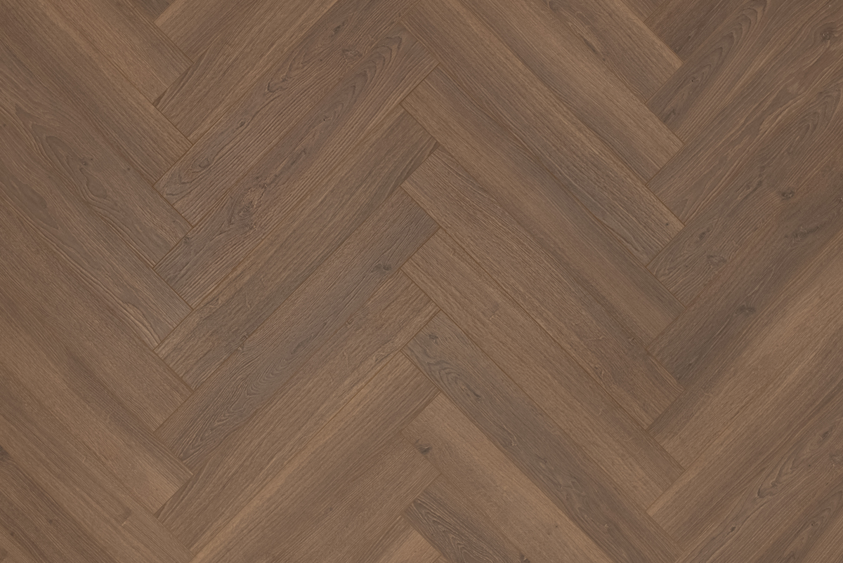 Deze vloer leeft. De toplaag heeft een voelbare houtstructuur die de nerven van het design volgt. Daarnaast is er veel variatie in de planken aangebracht, zodat je nooit twee dezelfde patronen naast elkaar ziet liggen. De luxe 4-zijdige V-groef benadrukt het formaat van de plank en maakt de parket-look compleet.