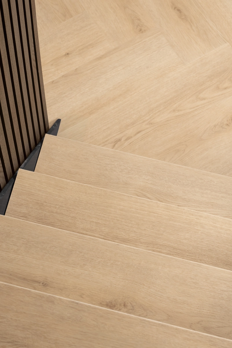 Door deze nieuwe, revolutionaire technologie is het Walvisgraat PVC het matste PVC van Nederland! Verder zijn deze vloeren milieuvriendelijk geproduceerd, te zien aan Emissiewaarde (A+), FloorScore, GreenGuard en het keurmerk Eurofins. Bovendien zijn deze lichtbruin XL visgraat PVC vloeren ftalaatvrij geproduceerd, wat bijdraagt aan een gezond binnenmilieu. De PVC visgraat vloeren zijn geschikt voor elke ruimte in huis, inclusief de badkamer en de keuken! Hierdoor kun je een prachtige eenheid creëren in jouw interieur. Samen met de realistische patronen is de Bryde Bruin Walvisgraat PVC vloer, net als de walvis, groots van formaat en zeer indrukwekkend. Helemaal weg van deze kleur, maar dan in een andere vloer? Ontdek dezelfde kleur in andere Floeren.
